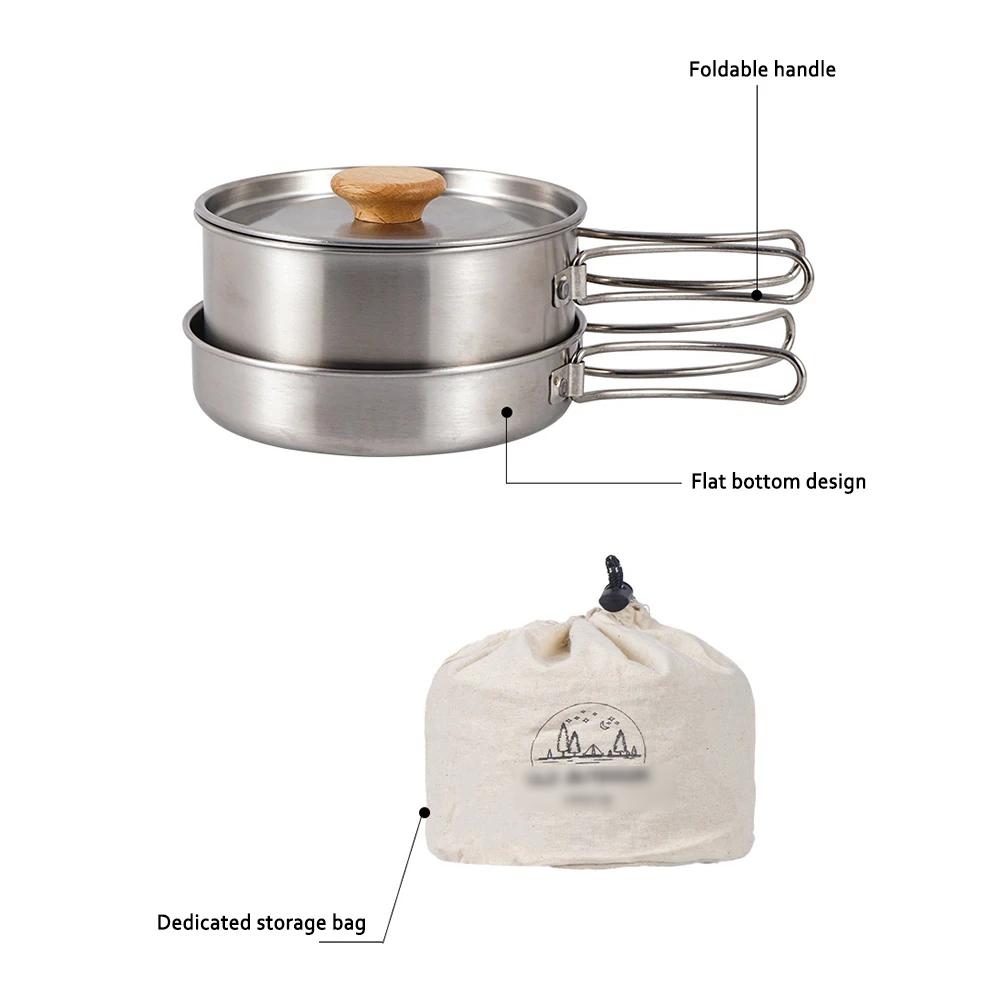 1. High-Quality Material: Made from durable 304 stainless steel, this camping pot set is built to last, with a quality construction that ensures easy cooking and cleaning.